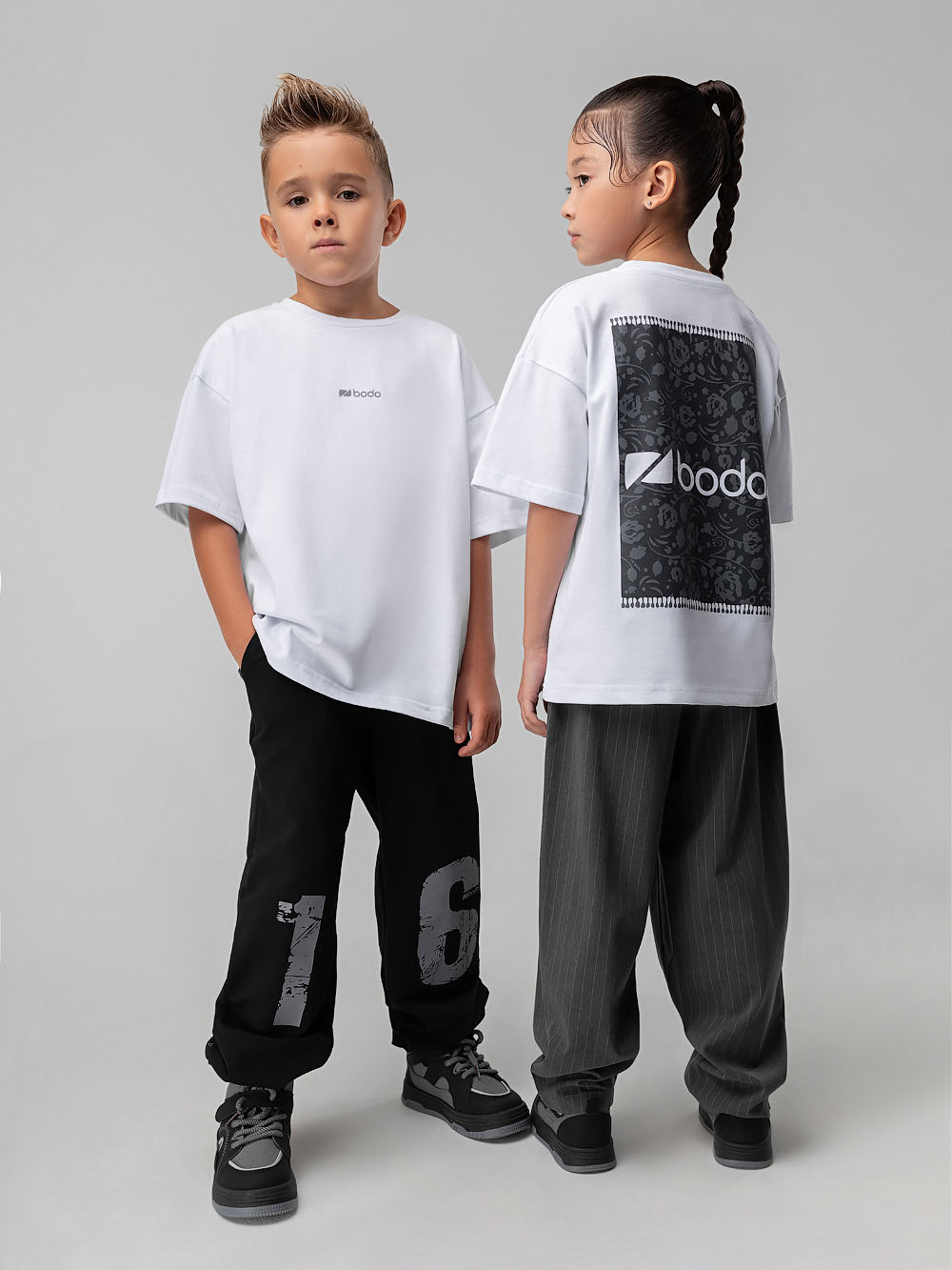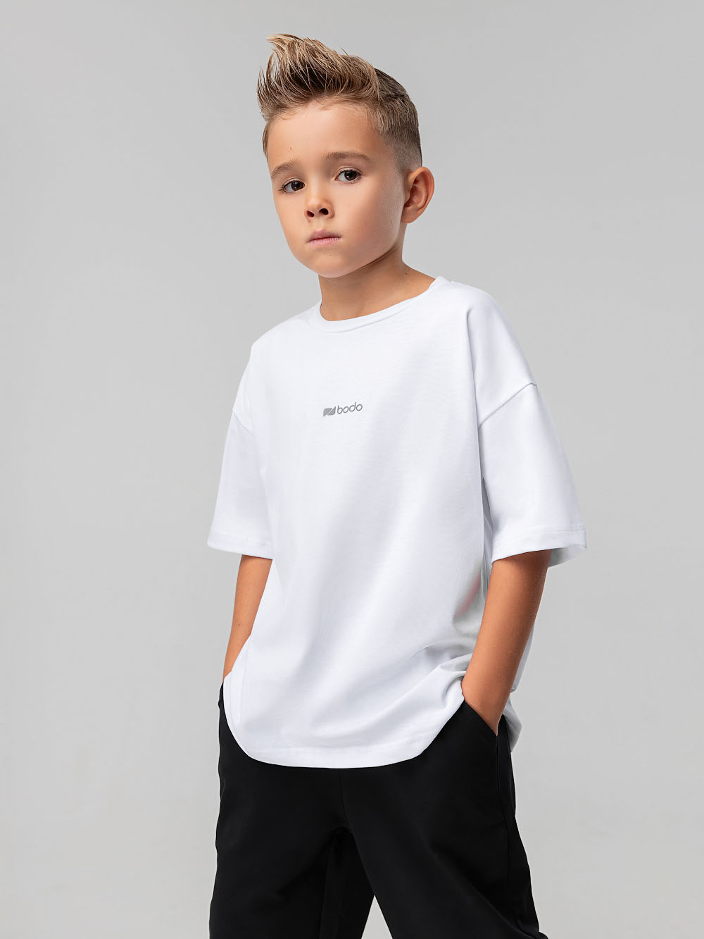 Свободная футболка с коротким рукавом. На полочке принт "Матрешка".