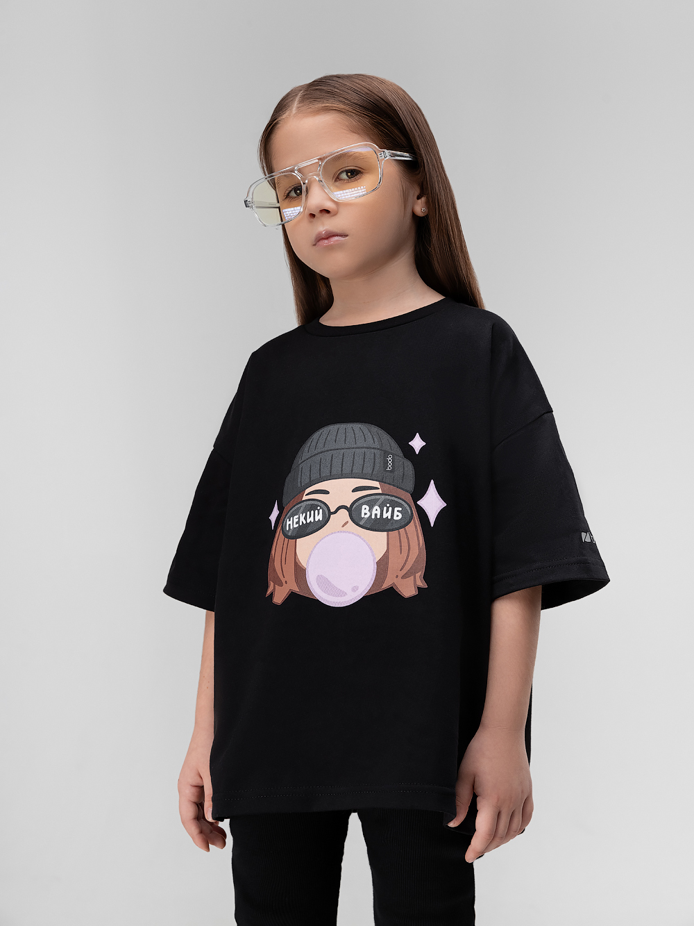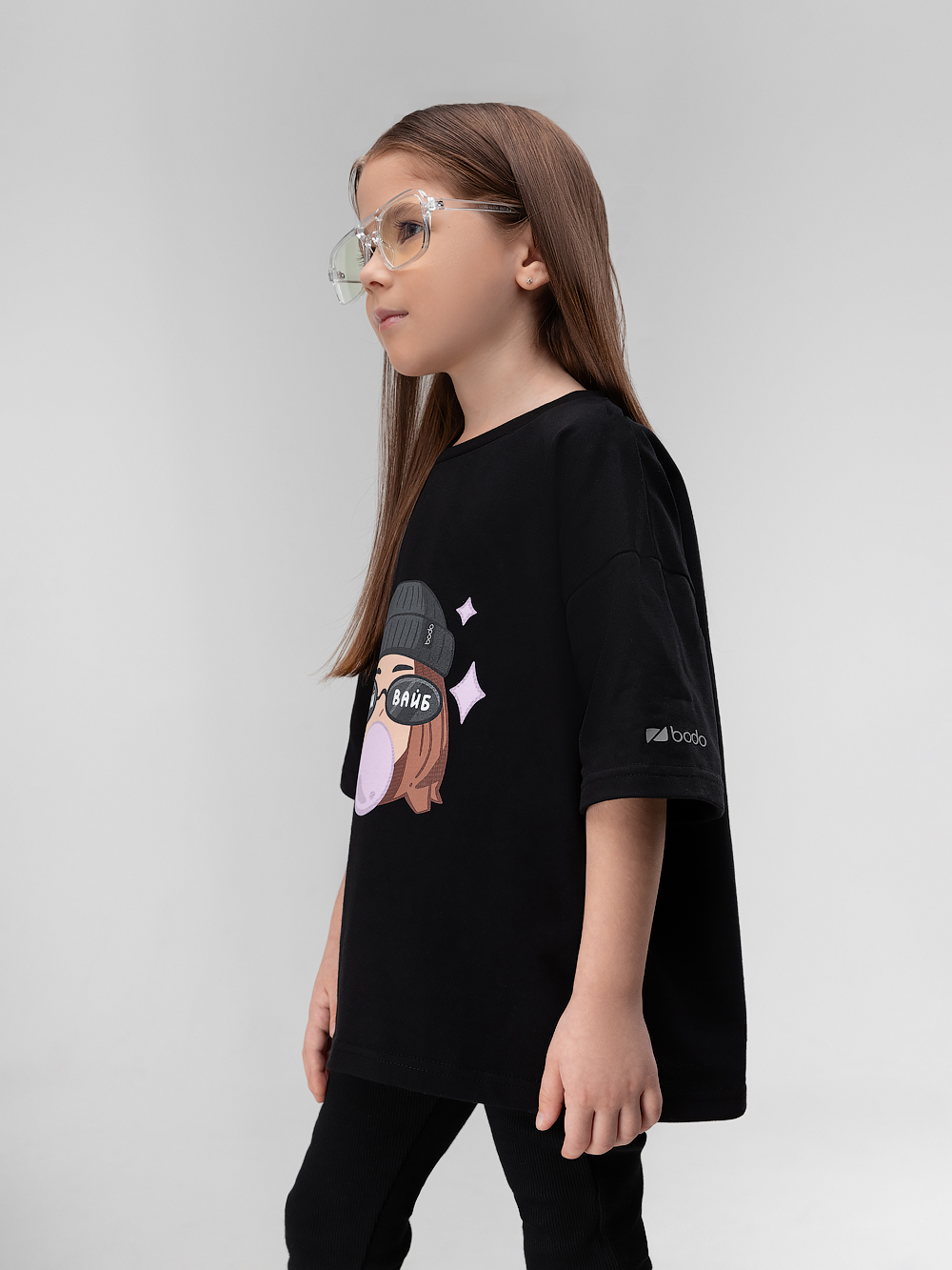 Свободная футболка с коротким рукавом. На полочке принт "Матрешка".