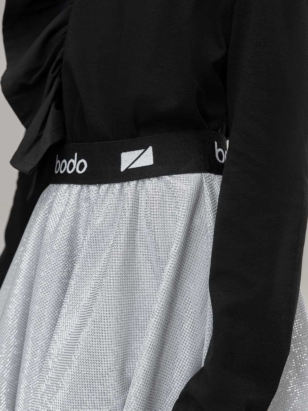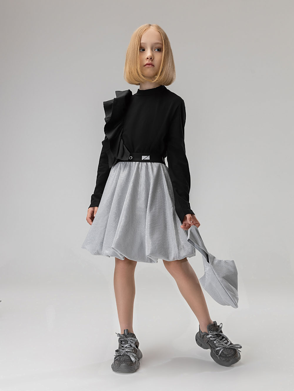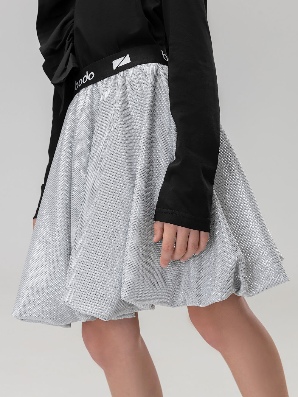 Юбка пышная, с воланами на эластичном поясе. Трикотажное полотно с люрексом, средней плотности с красивым переливающимся блеском.