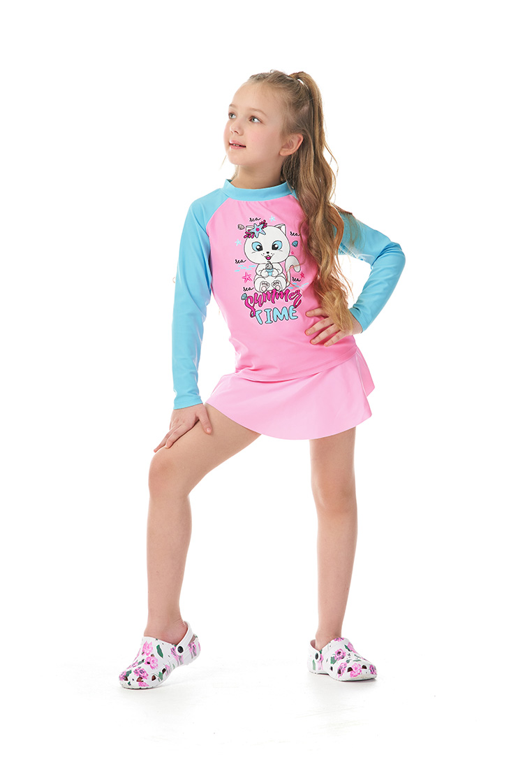 Купальный лонгслив с защитой от солнечных лучей SPF 50. Имеет гармоничное дизайнерское решение в виде сочетания двух нежных цветов с очаровательным принтом. Благодаря ткани из нейлона и спандекса лонгслив легкий, эластичный, быстро сохнет, легко очищается от любых загрязнений и долго сохраняет свою первоначальную форму и цвет. Прорезиненный принт так же устойчив к внешним воздействиям. Благодаря длинным рукавам плечи и руки полностью остаются в безопасности, даже при длительном нахождении под солнечными лучами. Удобный в купании, спокойных или активных играх, на море или загородном отдыхе. Практичный, лаконичный и стильный лонгслив легко сочетается с юбками, плавками, панамами и кепками из летней коллекции OLDOS, что поможет собрать ваш идеальный комплект. 82% нейлон, 18% спандекс, солнцезащита SPF 50+