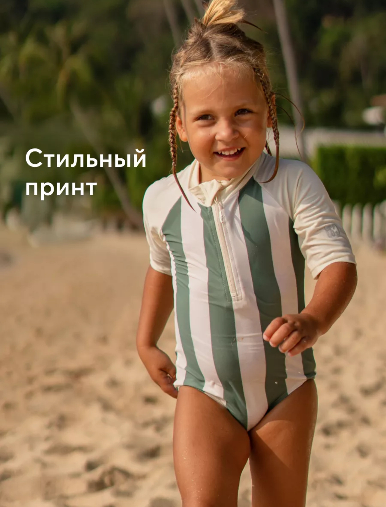Купальник для девочки с рукавами необходим для отдыха у моря. Купальник надежно защитит нежную кожу от ожогов и ультрафиолета во время игр в воде и на берегу. Практичный мягкий материал быстро сохнет. Ткань обладает максимальным фактором защиты от солнечного излучения – UPF 50+. Молния на горловине позволит просто надевать и снимать купальник. Функциональность и высокое качество дополнены стильным дизайном в духе актуальных тенденций.