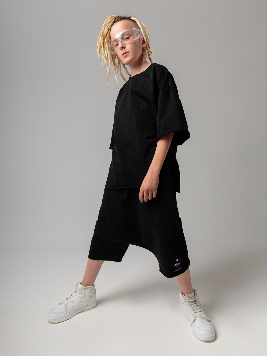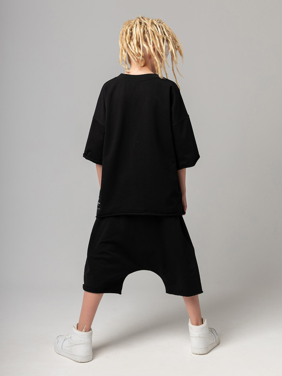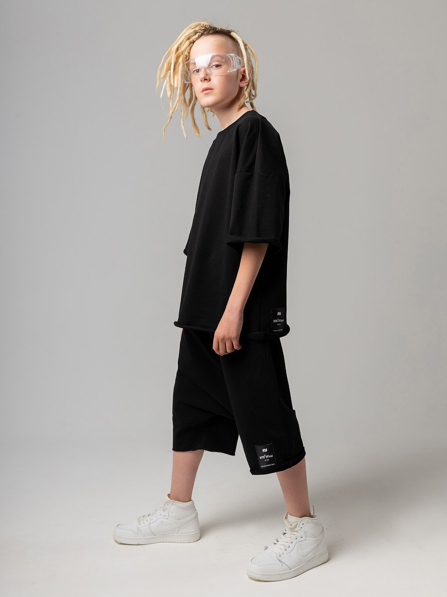 Костюм оверсайз с футболкой и шортами, подойдет мальчикам и девочкам. Шорты, детали: свободный покрой, пояс - эластичная резинка, карманы с отрезным бочком. Футболка, детали: короткие рукава, свободный покрой, округлый вырез горловины. Состав: футер двухнитка 92% хлопок 8% лайкра