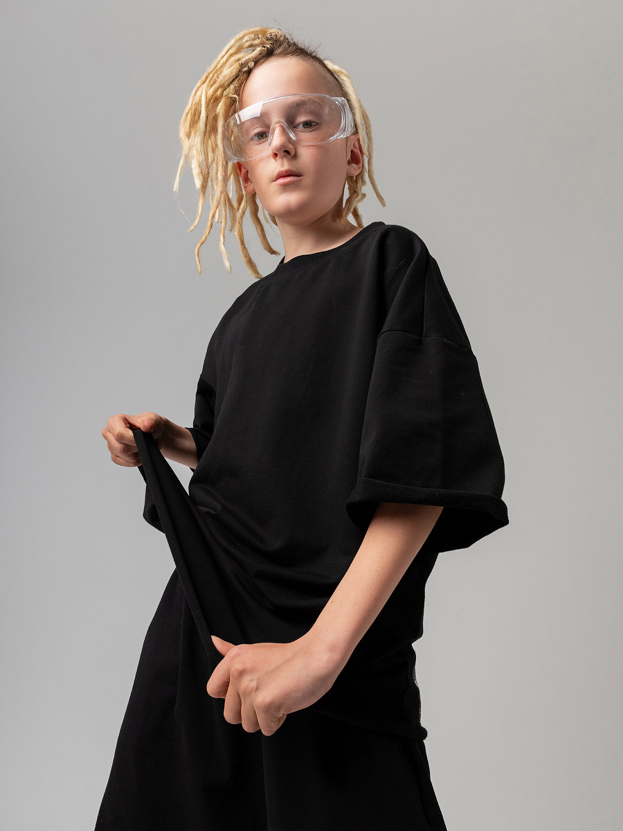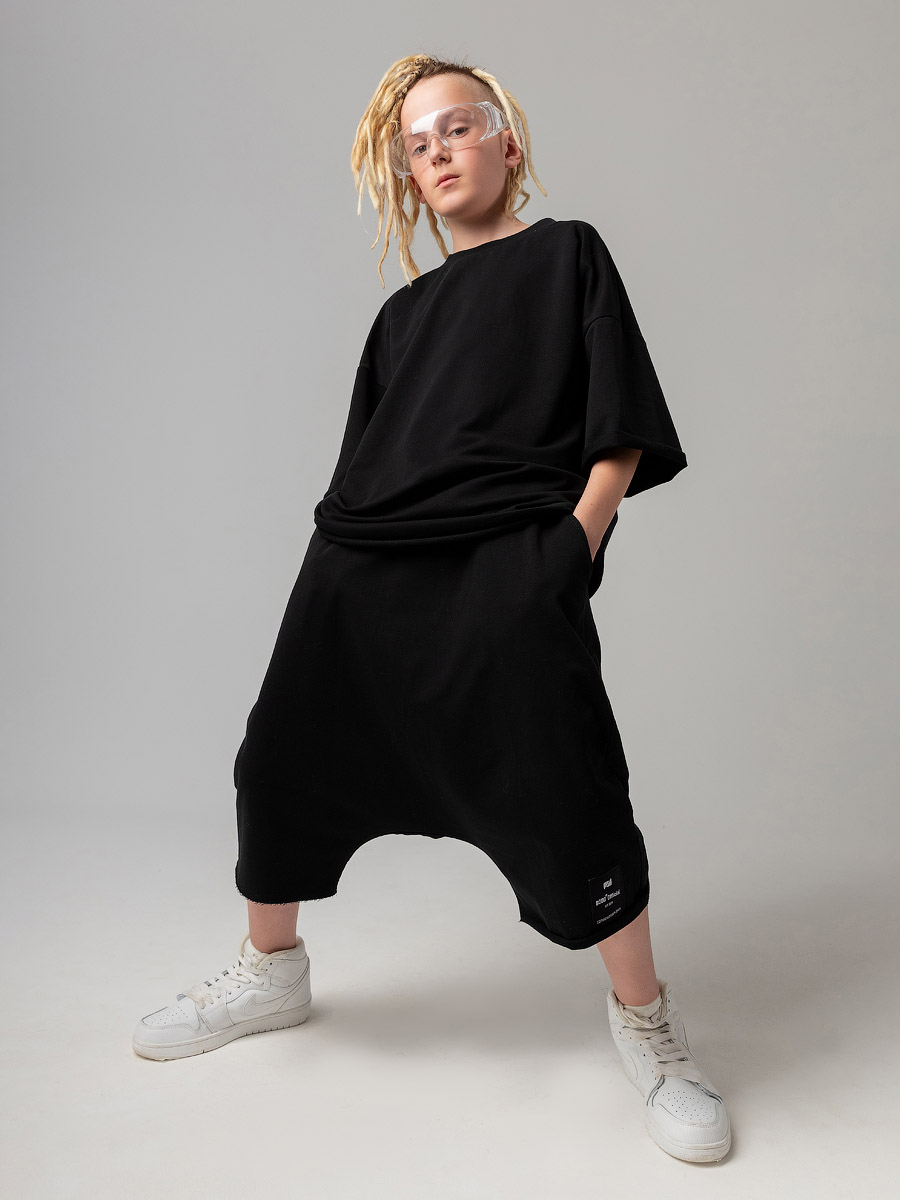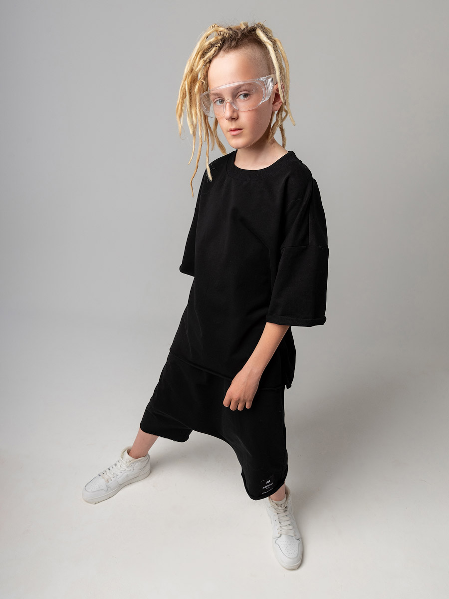 Костюм оверсайз с футболкой и шортами, подойдет мальчикам и девочкам. Шорты, детали: свободный покрой, пояс - эластичная резинка, карманы с отрезным бочком. Футболка, детали: короткие рукава, свободный покрой, округлый вырез горловины. Состав: футер двухнитка 92% хлопок 8% лайкра