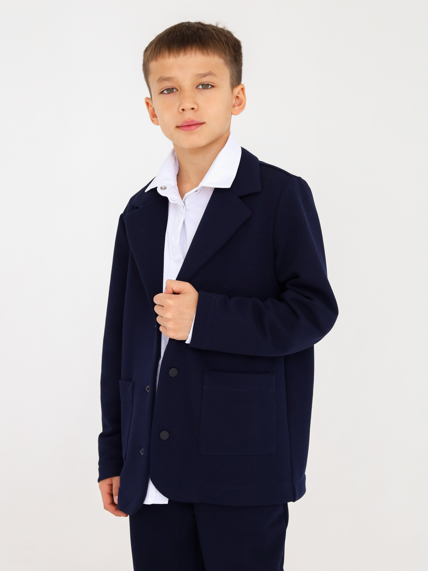 Трикотажный пиджак классического кроя, с двумя кармашками, на кнопках. Прекрасно себя зарекомендовал в наших школьных коллекциях. Только в этом сезоне встречаем его в новой ткани - трикотаж пике. Достаточно плотный, но не толстый. Отлично подойдет в дополнение как к классическим брюкам, так и к более спортивным вариантам низа. Натуральный состав подарит комфорт и удобство. Цвета - черный и синий, меланж.