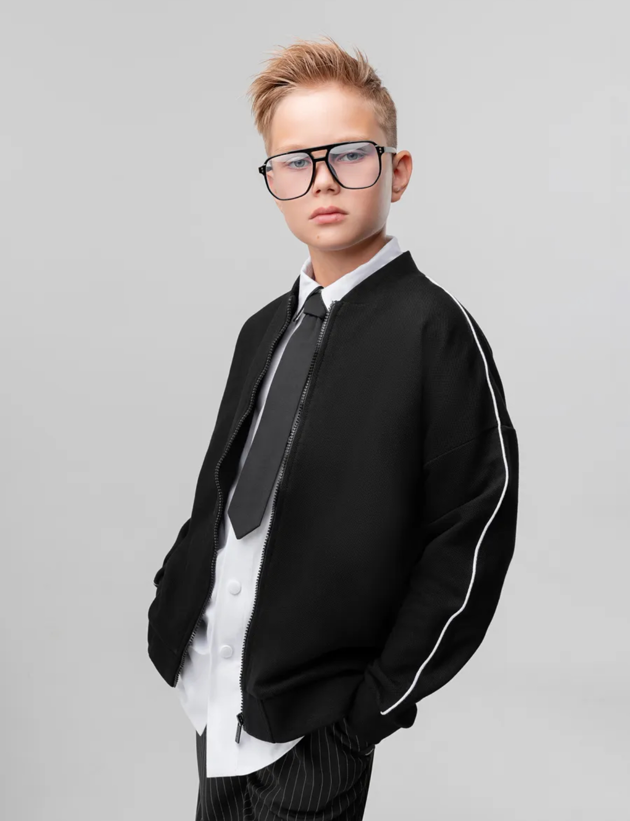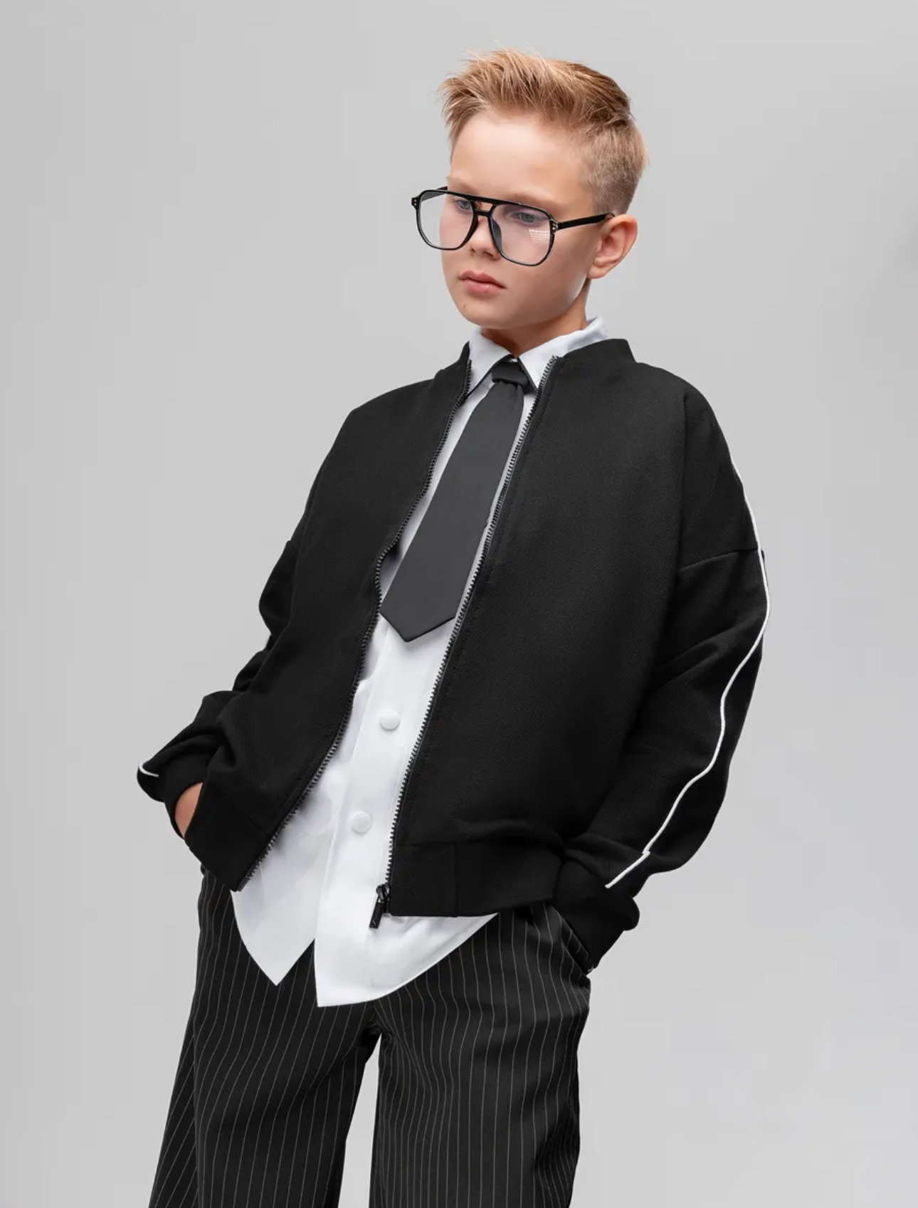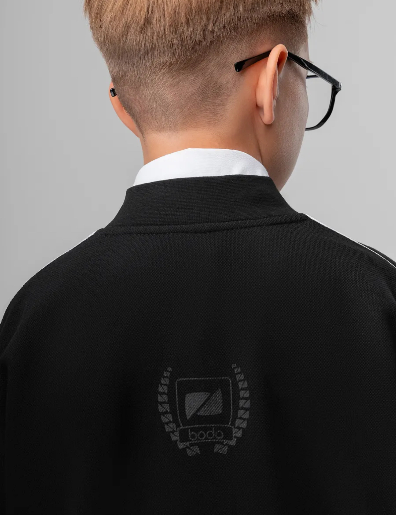 Толстовка из материала пике на молнии, без карманов. По шву атласный белый кант, на левой стороне брендированный принт герба.