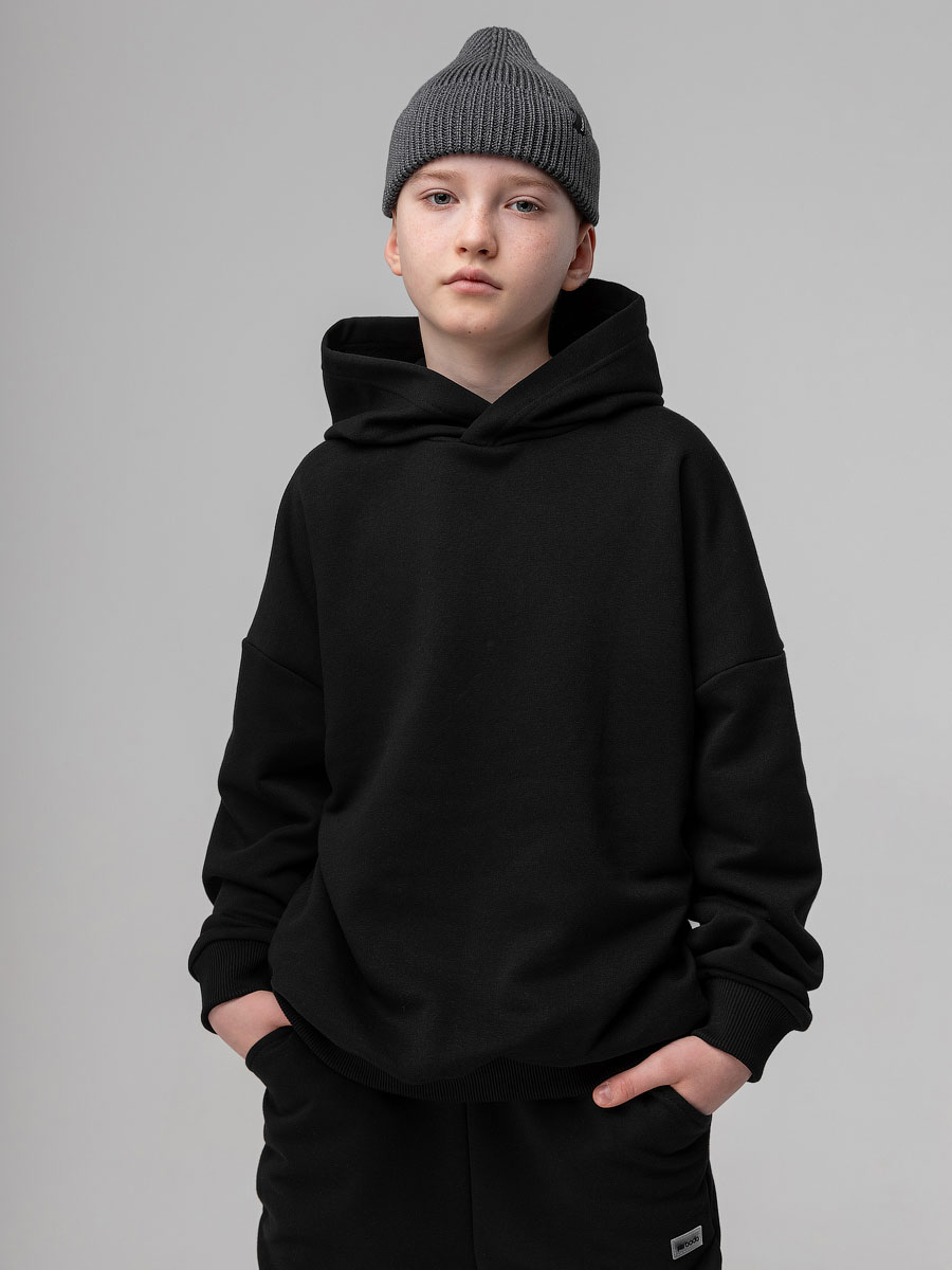 Толстовка для детей школьного возраста. Толстовка свободного силуэта, на притачном поясе по низу изделия, со спущенной линией плеча и втачными рукавами с притачной манжетой. Толстовка с капюшоном. Состав: футер трехнитка петля 80% хлопок 20% полиэстер