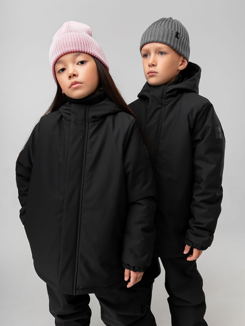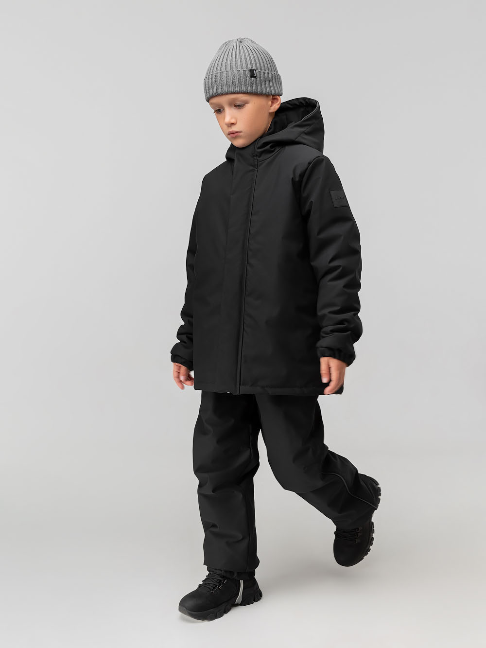 Материал - мембранная ткань 5000/5000. Куртка: утеплитель 150 г/м², подкладочный материал флис 100% полиэстер. Брюки: утеплитель 100 г/м², подкладочный материал кулирная гладь 100% хлопок. Температурный режим от -10 до +5 гр., в зависимости от индивидуального теплообмена ребенка и промежуточного слоя одежды.